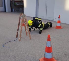 Im Anschluss wurden eine Kurzüberprüfung der Atemschutzgeräte sowie die Hochdichtheitsprüfung durchgeführt.