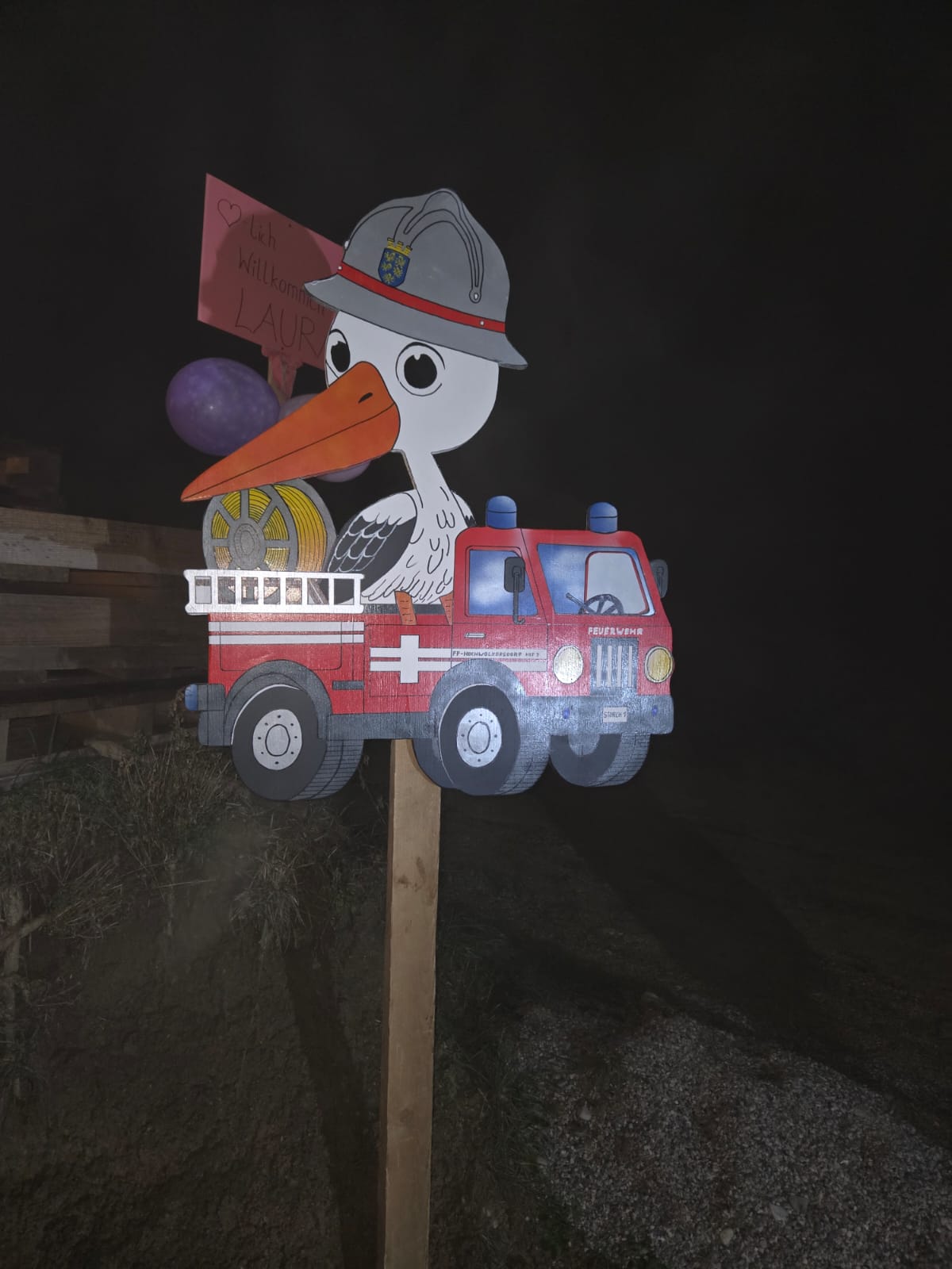 Unser Feuerwehrstorch machte seinen ersten Ausflug zu unserem Gastfeuerwehrmitglied Markus Schuh und unserer Bürgermeisterin Bianca Fürst, anlässlich der Geburt ihrer Tochter Laura.