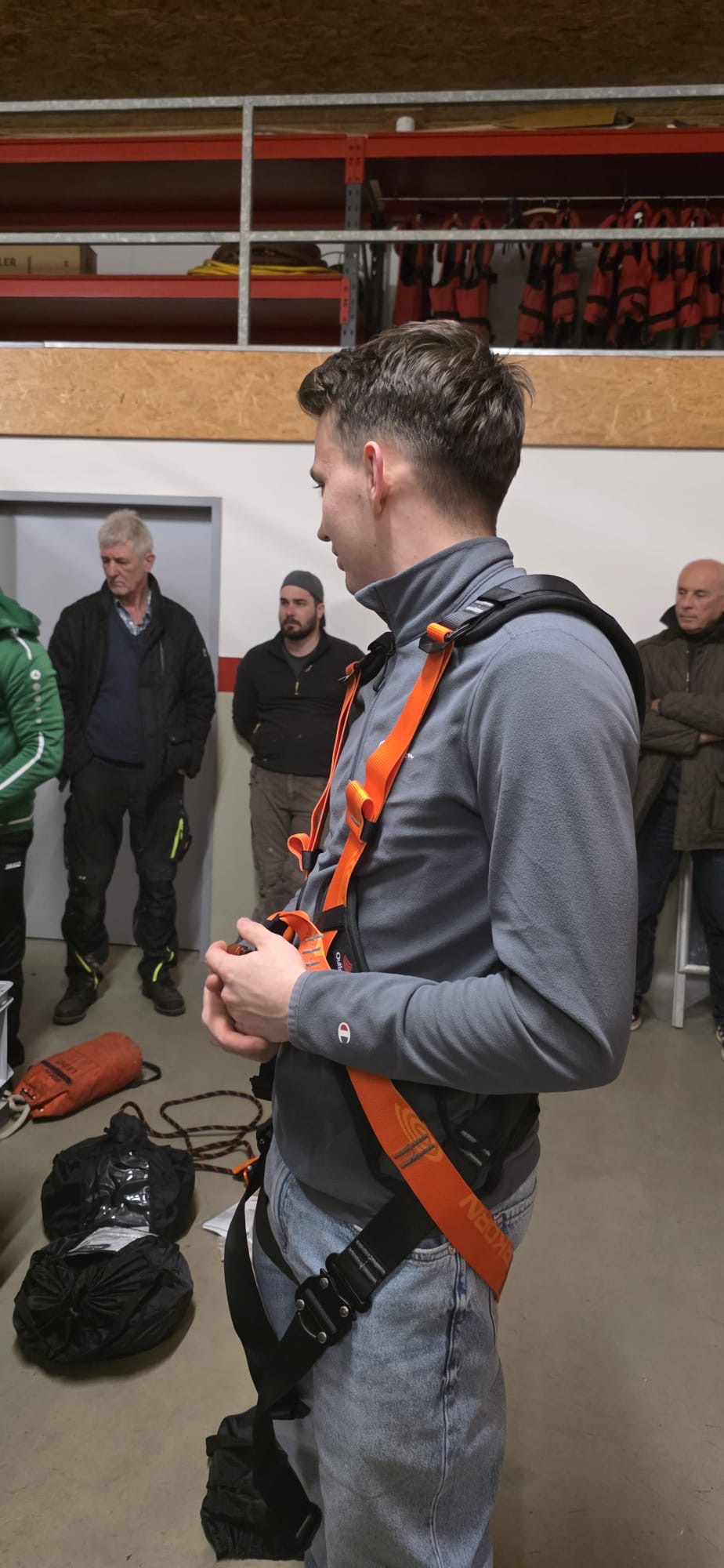 Anschließend zeigte SB Thomas Manninger die Handhabung des Abseilgeräts in Verbindung mit dem 5. Geschirr „Lory“. Danach konnten die Geräte praktisch ausprobiert und angewendet werden.