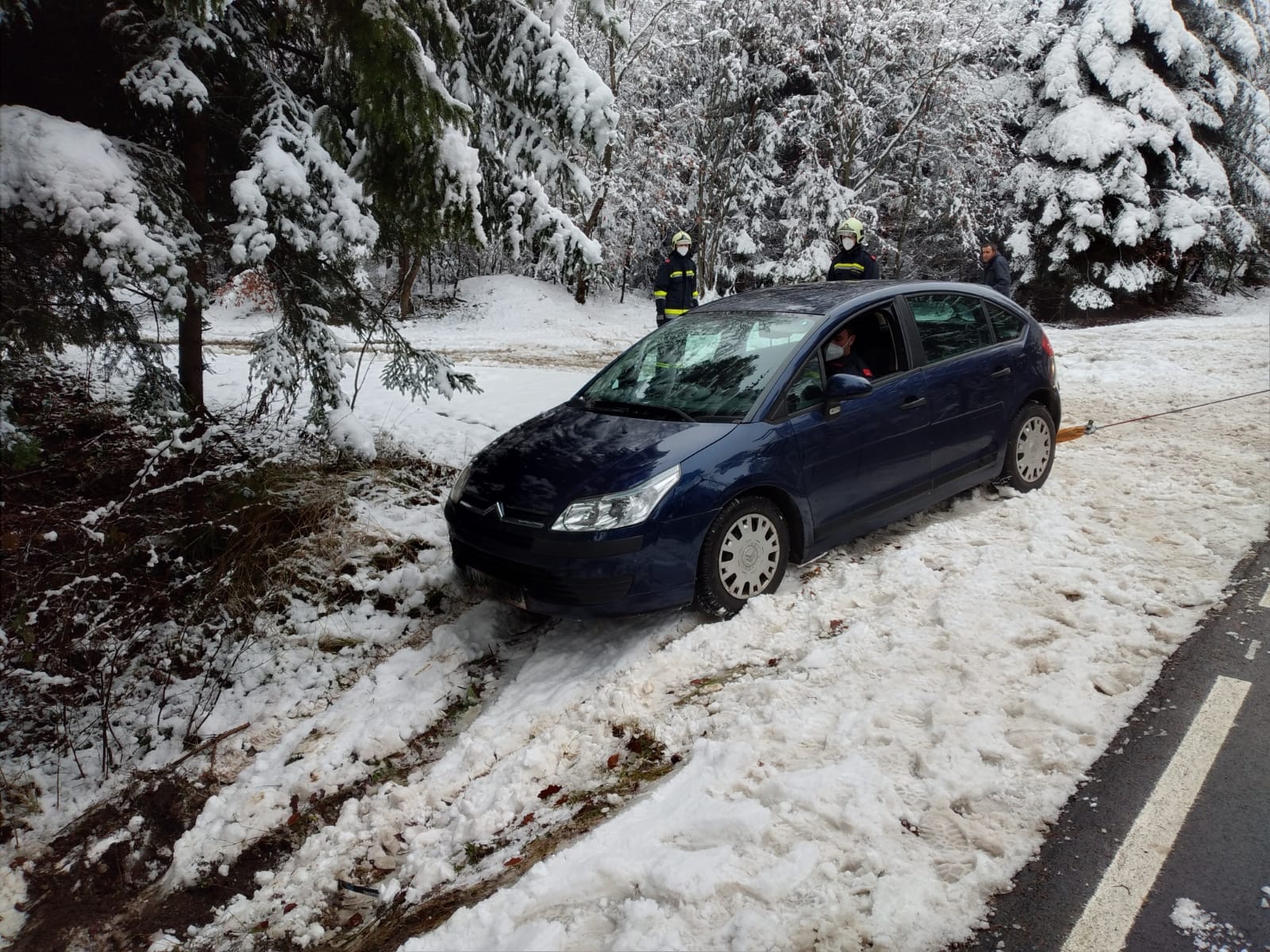 Knapp unterhalb des Fernblicks in Richtung Schleinz kam ein Fahrzeug aus unbekannter Ursache von der Straße ab und verunfallte.