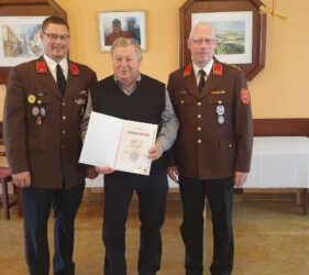 Nach mehreren Tagespunkten wurden die Ehrungen für langjährige Tätigkeit auf dem Gebiet des Feuerwehrwesens überreicht.